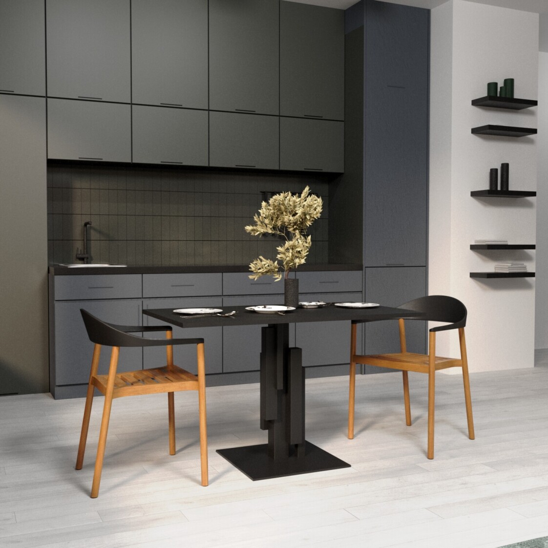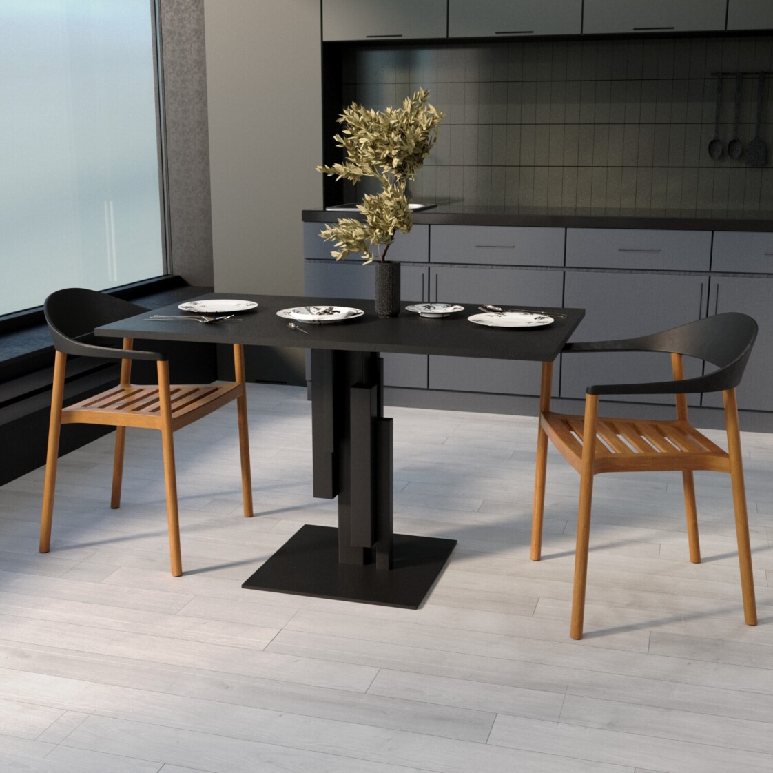 Столешница: МДФ с пластиковым покрытием HPL Опора: металл с полимерной покраской Высота стола: 760 мм