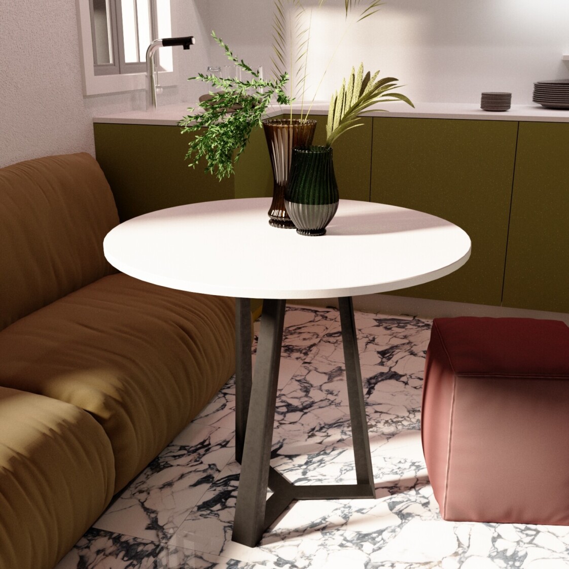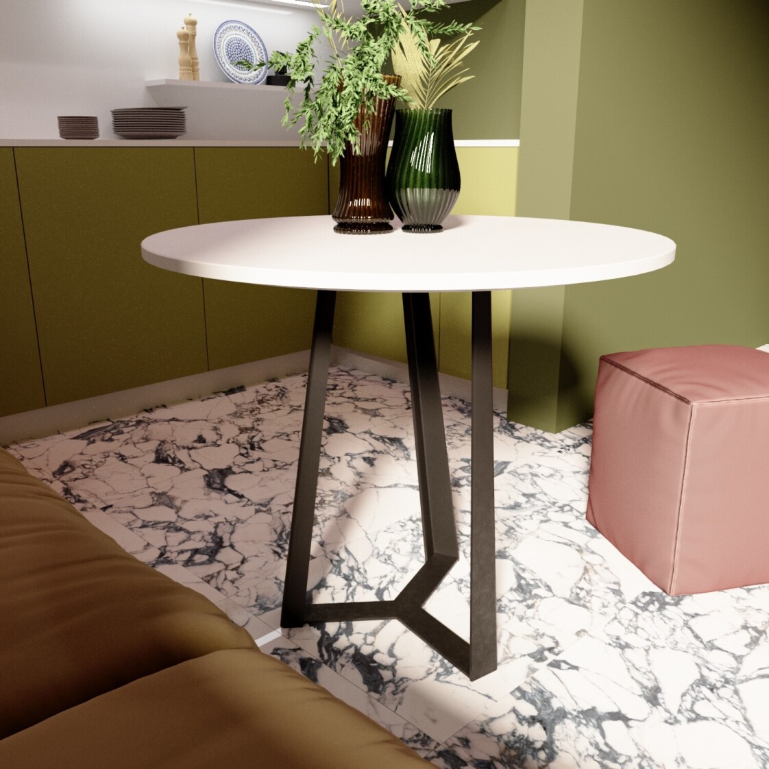 Столешница: МДФ с пластиковым покрытием HPL Опора: металл с полимерной покраской Высота стола: 760 мм